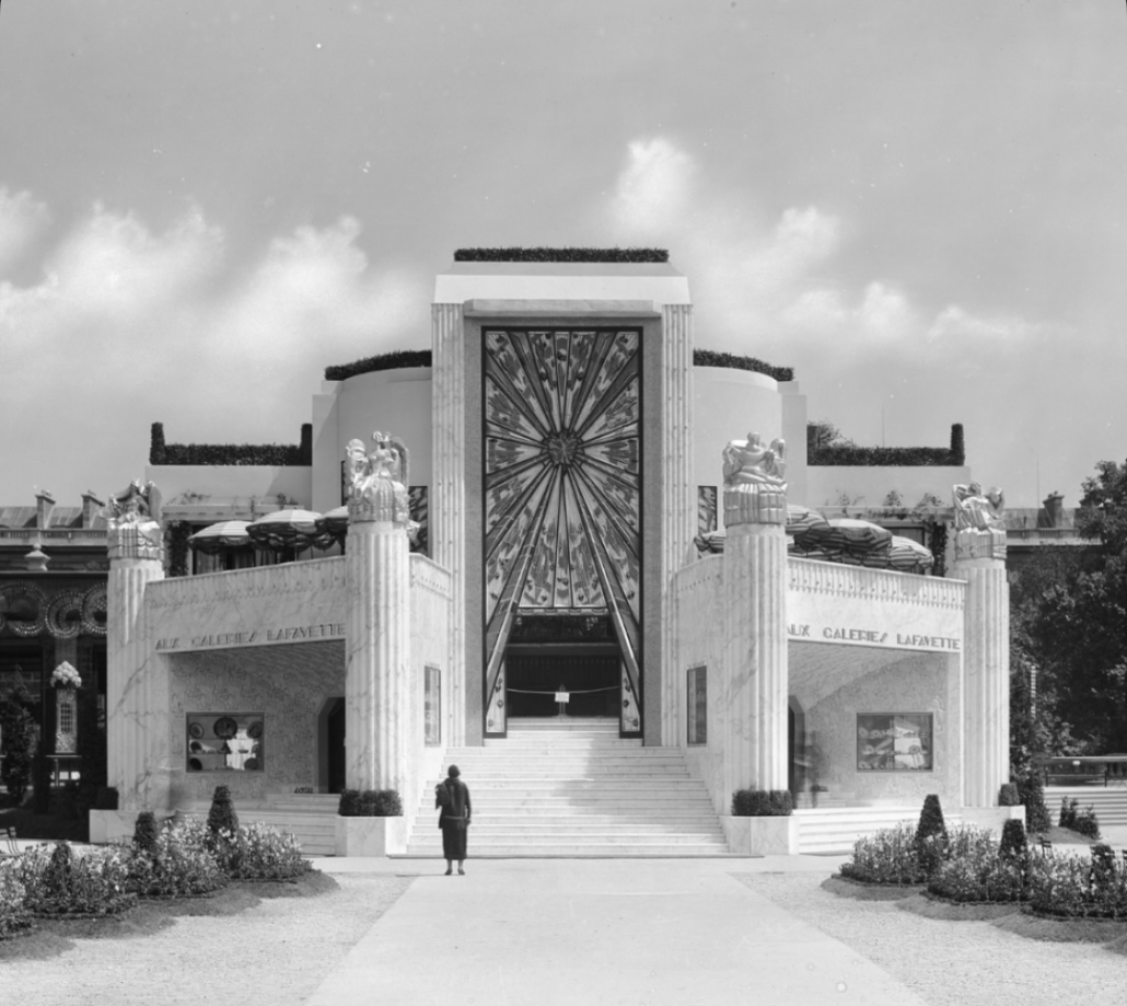 Tous les domaines de la création artistique et de la décoration sont présentés. Les remarquables laques de Jean Dunand côtoient les verreries de François Décorchemont, la tabletterie, les arts de la table, ou encore la bijouterie, illustrée par des pièces à la modernité saisissante, notamment une série de broches de Raymond Templier et de Jean Desprès. Le rôle fondamental du dessin est mis en lumière à travers des projets décoratifs, d’architecture intérieure et de mobilier, notamment les dessins de Groult pour la chambre de Madame dans le pavillon de l’Ambassade française, qui dialoguent avec le chiffonnier qui en est l’un des rares vestiges. L’univers de la mode et des arts textiles est représenté par la cape de Marguerite Pangon, la robe aux petits chevaux de Madeleine Vionnet, une veste réalisée par Sonia Delaunay, une robe de Jeanne Lanvin mais aussi des dessins de textiles et des projets de vitrines de magasi