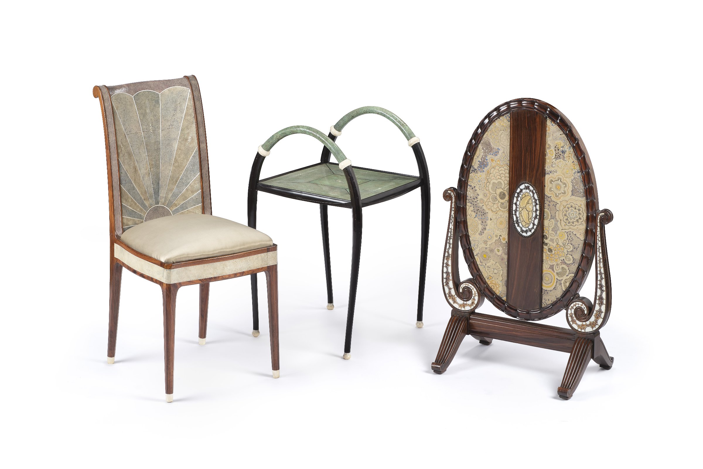 Ses formes séduisent les décorateurs, architectes et fabricants d’alors, mais restent souvent réservées aux catégories sociales aisées, du fait du coût élevé des matériaux et de la finesse des techniques mises en place à cette époque. L’Art déco incarne une période foisonnante, marquée par une soif de nouveauté, de vitesse, de liberté. Il touche tous les domaines de la création : mobilier, mode, joaillerie, arts graphiques, architecture, transports… L’exposition revient ainsi sur les différentes tendances de l’Art déco, entre l’abstraction géométrique affirmée de Sonia Delaunay et Robert Mallet‑Stevens, l’épure formelle de Georges Bastard et Eugène Printz, ou encore le goût du décoratif de Clément Mère et Albert‑Armand Rateau.