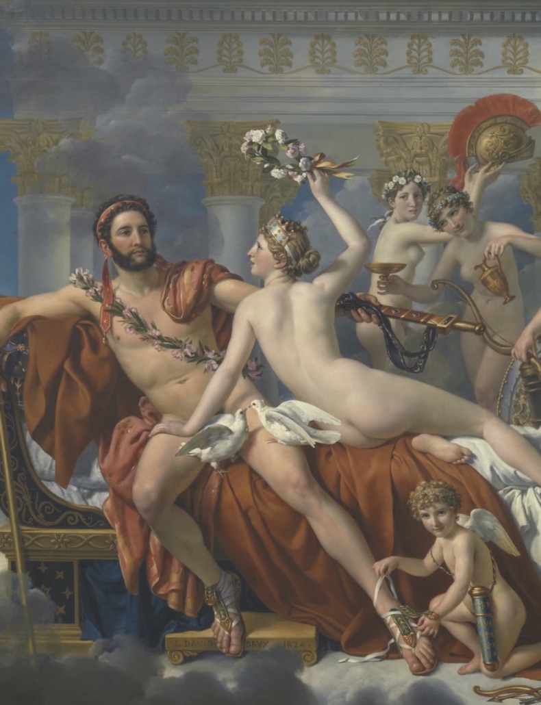 David est un monument. « Père de l’École française », « régénérateur de la peinture », il a créé des images qui hantent aujourd’hui encore notre imaginaire collectif : Marat assassiné, Bonaparte franchissant les Alpes, le Sacre de Napoléon… C’est à travers le filtre de ses tableaux que nous nous représentons les grandes heures de la Révolution et de l’Empire napoléonien, et dans ses portraits que revit la société de cette époque.
