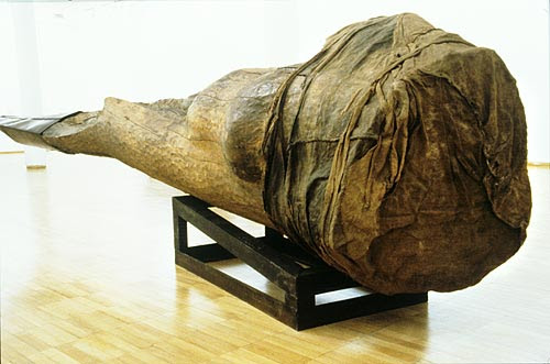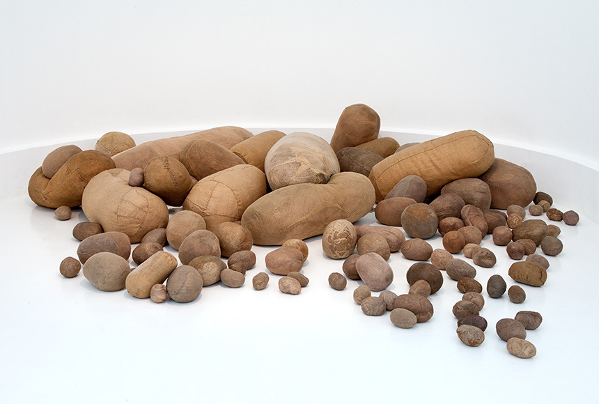La quatrième partie s’ouvre sur son installation emblématique Embryologie, dévoilée à la Biennale de Venise en 1980. Entre corps, matière organique et roche, ces cocons accumulés immergent le spectateur dans un lieu ambigu et hybride. Amas cellulaire observé au microscope, tissus, ou peaux… Embryologie immerge le regard dans le mystère du vivant.