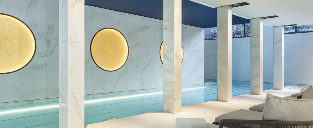 The spa boasts a pool, a sauna, a steam room and a jacuzzi. Under the glass ceiling which offers a great source of natural light, you will find 700 sqm worth of wellness, fitness and relaxation: 6 individual treatment rooms including a couple cabin with a jacuzzi, after treatment lounging areas, changing rooms complete with private steam rooms and a 100 sqm luxury gym.