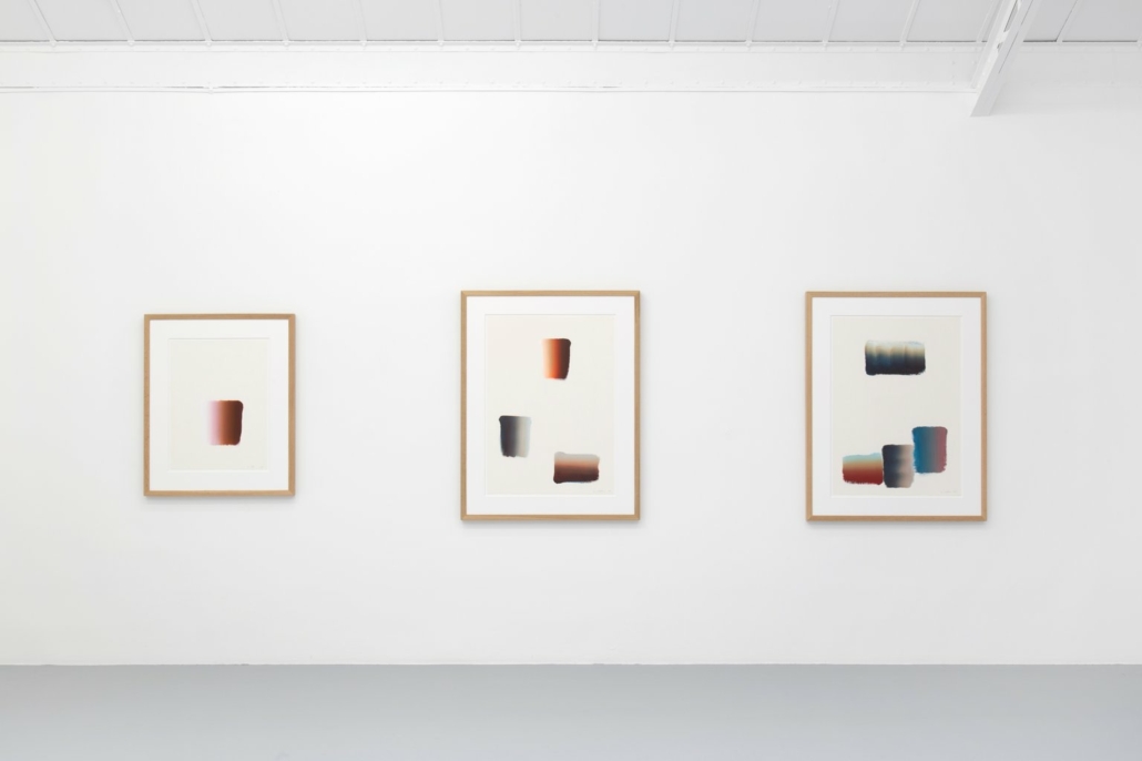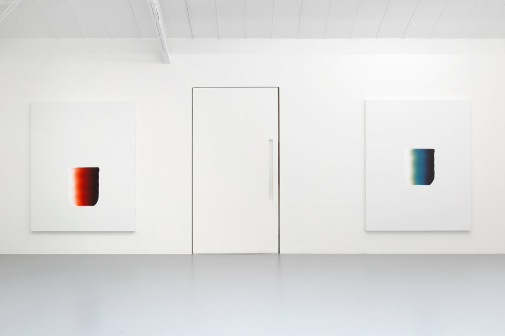 The most recent works, many of which are titled Response, are composed in much the same way: one or more separate forms on a white background. But they incorporate color. Just as gray shifted from shadow to pallor, blue or red, in all their intensity at the center of the form, are absorbed by shadow on one edge and by light on the opposite edge. The color then disappears, engulfed by a gradual darkening that almost reaches black and, symmetrically, devoured by an increasingly blinding whiteness. Whether the form is vertical or horizontal, the transition from light to shadow is inexorable. As the eye approaches, it perceives the undulating movements of the brushstrokes, which accentuate the sensation of life. Neither color nor form is stable. Nor is space, for frontality is disrupted by this chromatic phenomenon.