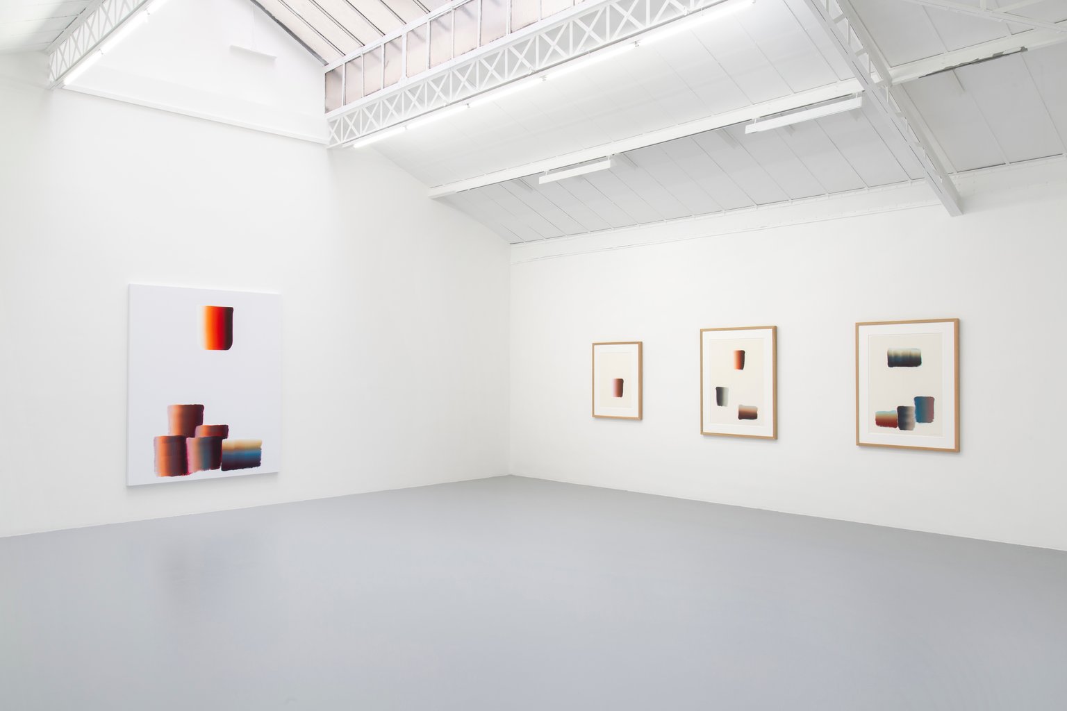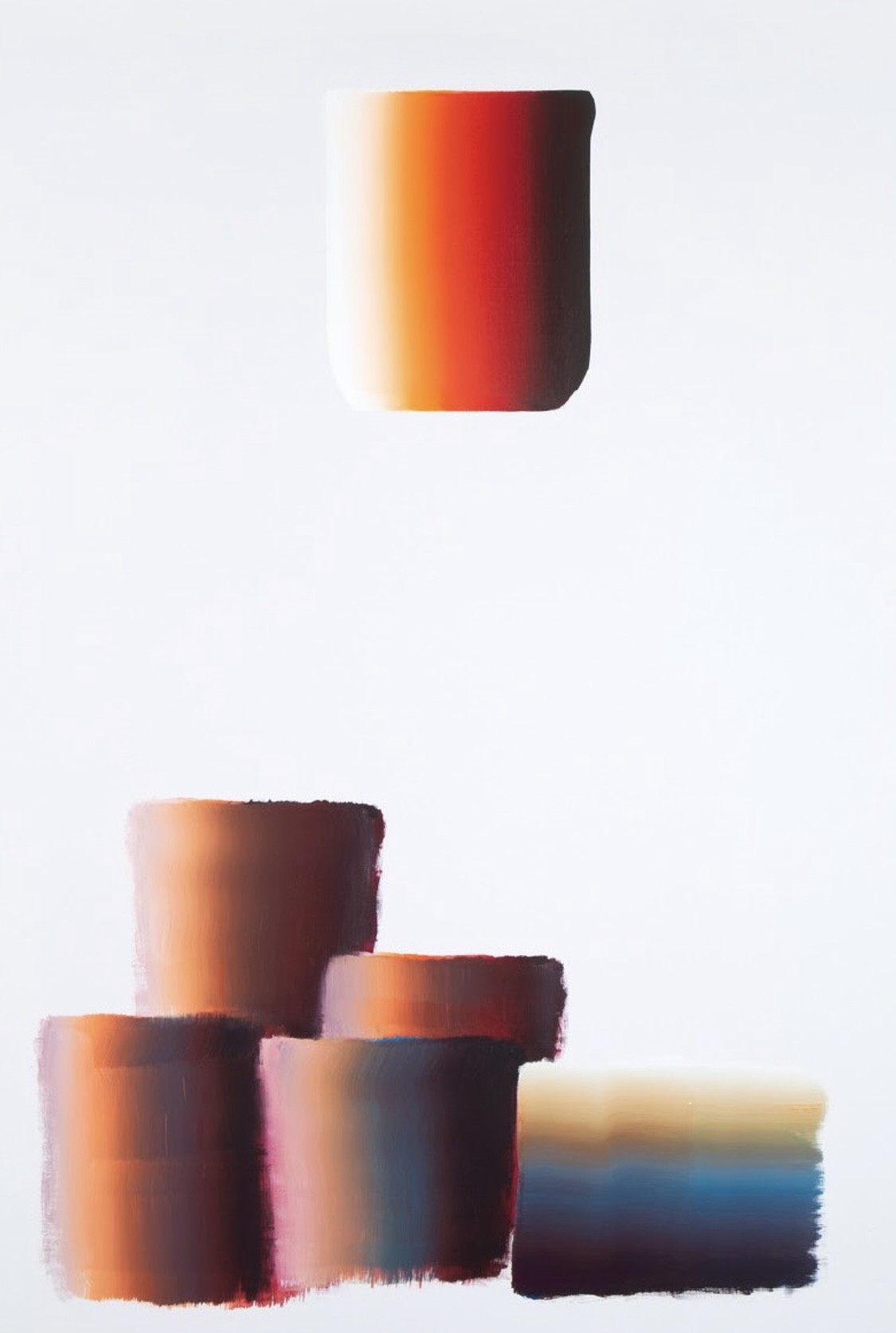 The most recent works, many of which are titled Response, are composed in much the same way: one or more separate forms on a white background. But they incorporate color. Just as gray shifted from shadow to pallor, blue or red, in all their intensity at the center of the form, are absorbed by shadow on one edge and by light on the opposite edge. The color then disappears, engulfed by a gradual darkening that almost reaches black and, symmetrically, devoured by an increasingly blinding whiteness. Whether the form is vertical or horizontal, the transition from light to shadow is inexorable. As the eye approaches, it perceives the undulating movements of the brushstrokes, which accentuate the sensation of life. Neither color nor form is stable. Nor is space, for frontality is disrupted by this chromatic phenomenon.