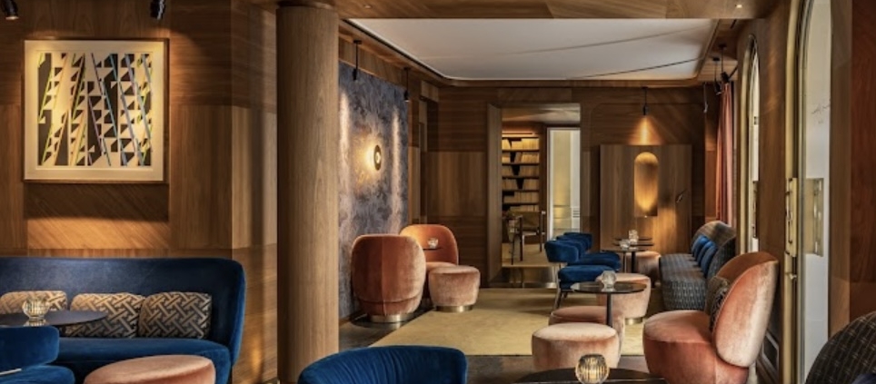 Legend has it that James Joyce wrote part of “Ulysses” in the building of the sublime Pavillon Faubourg Saint-Germain. Its bar, open to the street, is resolutely aimed at a loyal clientele of the neighborhood. But the cocktail menu created by mixologist Clément Lepage pays tribute to travelers and all the destinations that make us dream, comfortably installed in this little cocoon of velvet and gold.