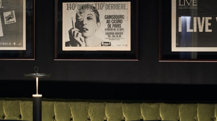 Café and piano bar, in homage to the places where Serge Gainsbourg performed at the start of his career, the decor of Gainsbarre takes up the codes of 5 bis rue de Verneuil, his famous private mansion: walls covered in black, a carpet with patterns of poppies and water lilies and everywhere photographs which remind us both of the career and the aura of the french composer.