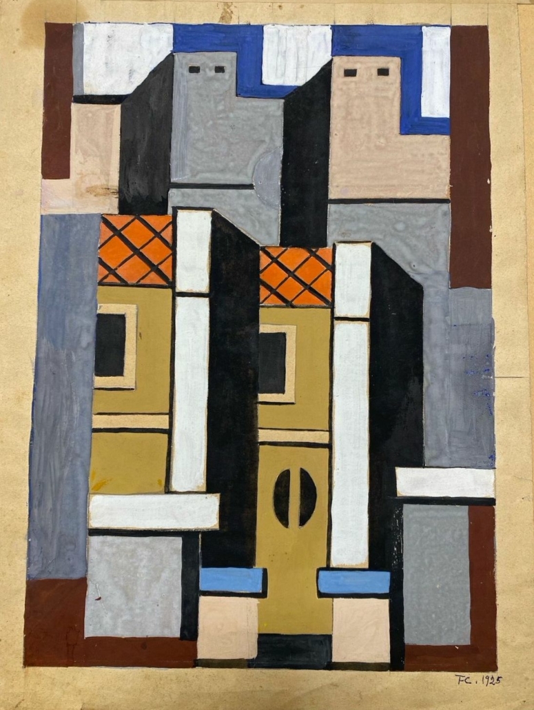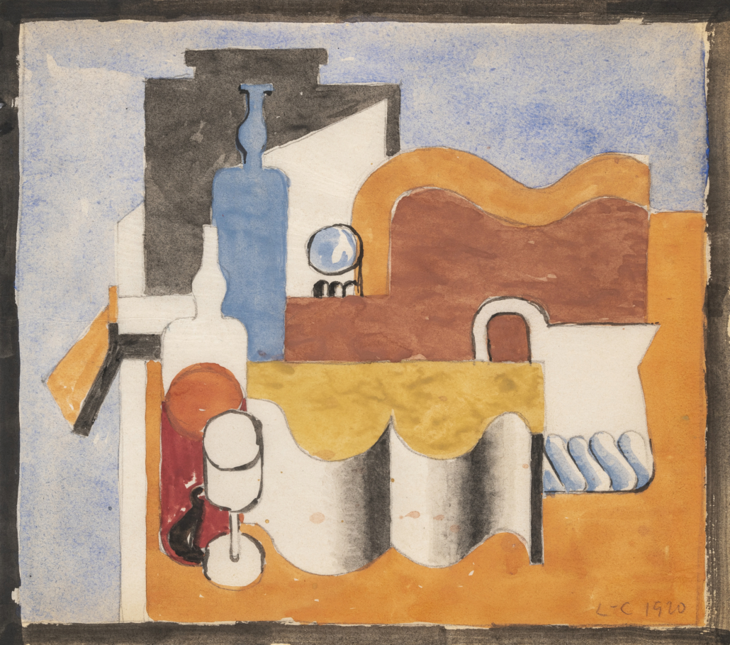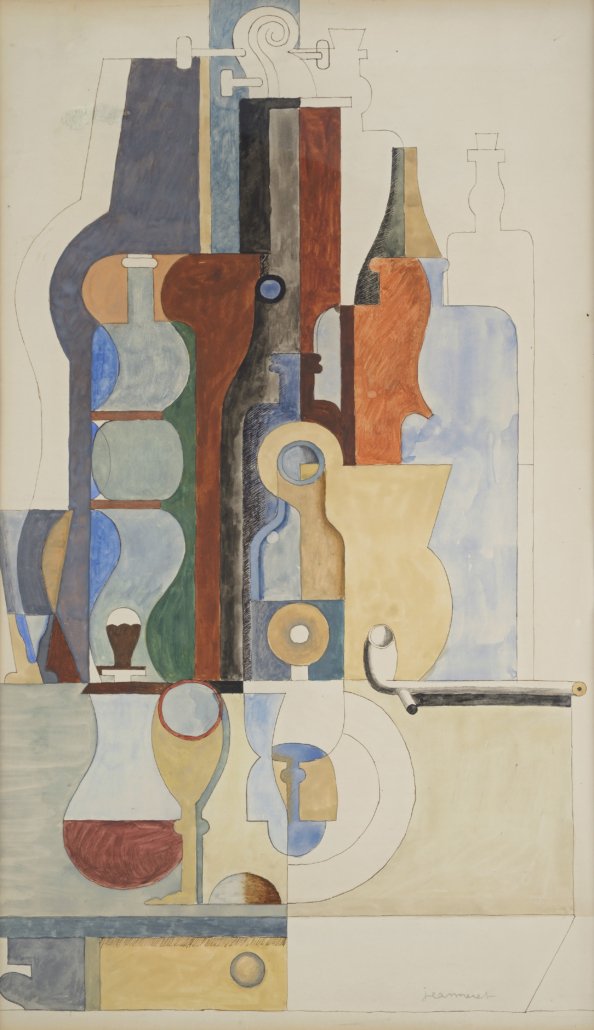 It was Amédée Ozenfant who, upon their meeting in 1917, introduced Charles-Edouard Jeanneret (the future Le Corbusier) to Cubism, explained his views on Purism and taught him painting. Mentor, teacher and professor, Ozenfant produced purist works most in line with the principles he had forged. Pictorial research was carefully thought out in advance, prior to the execution of the gouaches and the final paintings. Ozenfant’s still lifes are characterized by an ultra-synthetic style of representing objects, which are reduced to the simplest geometric forms.