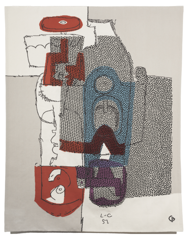 The exhibition’s first figure, Le Corbusier, began his artistic career with purist compositions: paintings, gouaches, and drawings that perfectly embody the core of his purist practice are featured in the exhibition. Even after his break with Ozenfant, Le Corbusier continued to create object compositions throughout his career. This short but crucial stage in his artistic development had a profound impact on him. Each decade, he returned to purism by incorporating his current formal concerns, notably by renewing his color palette. This section, composed of later works, is shown at the Galerie Pascal Cuisinier. He also used purist compositions to explore diverse mediums, such as tapestry, which he particularly favored.