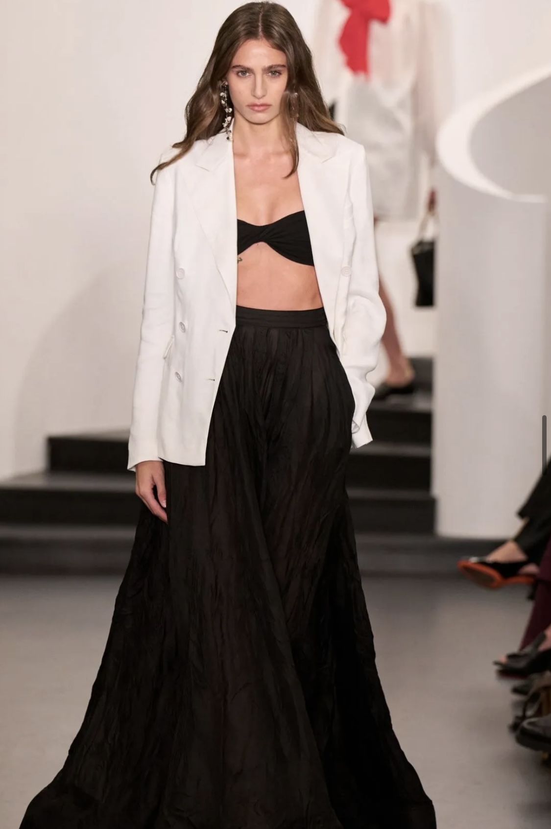 This season marks the final presentation of the original creations designed by Giorgio Armani, the designer having passed away in September 2025 after forty years of an extraordinary journey. The Armani style is characterized by clean lines and silhouettes that naturally hug the body, simultaneously simple and sophisticated, in a rather classic color palette. A contemporary yet timeless style, equally suited to a workday or a celebratory dinner, like a mix and match between Milanese and Parisian chic!