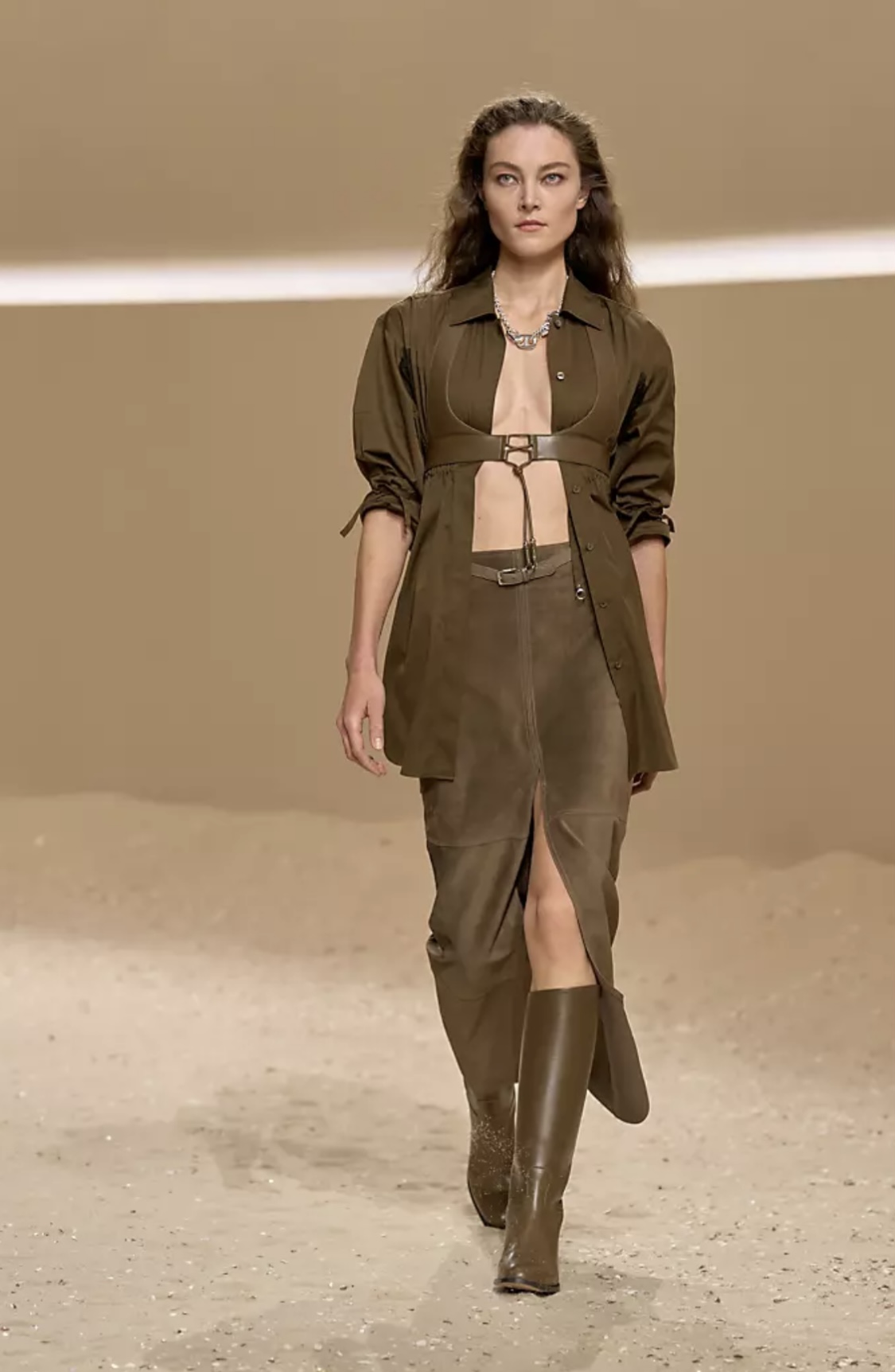 For the past ten years, Nadège Vanhee has been breathing new life into minimalist modernity at HERMES while paying homage to the house’s heritage. Noble materials, chic and sensual cuts, nods to the famous Hermès Orange that we adore, and a highly successful color palette. She dresses the modern, urban woman in comfortable, elegant, and undeniably chic clothing.