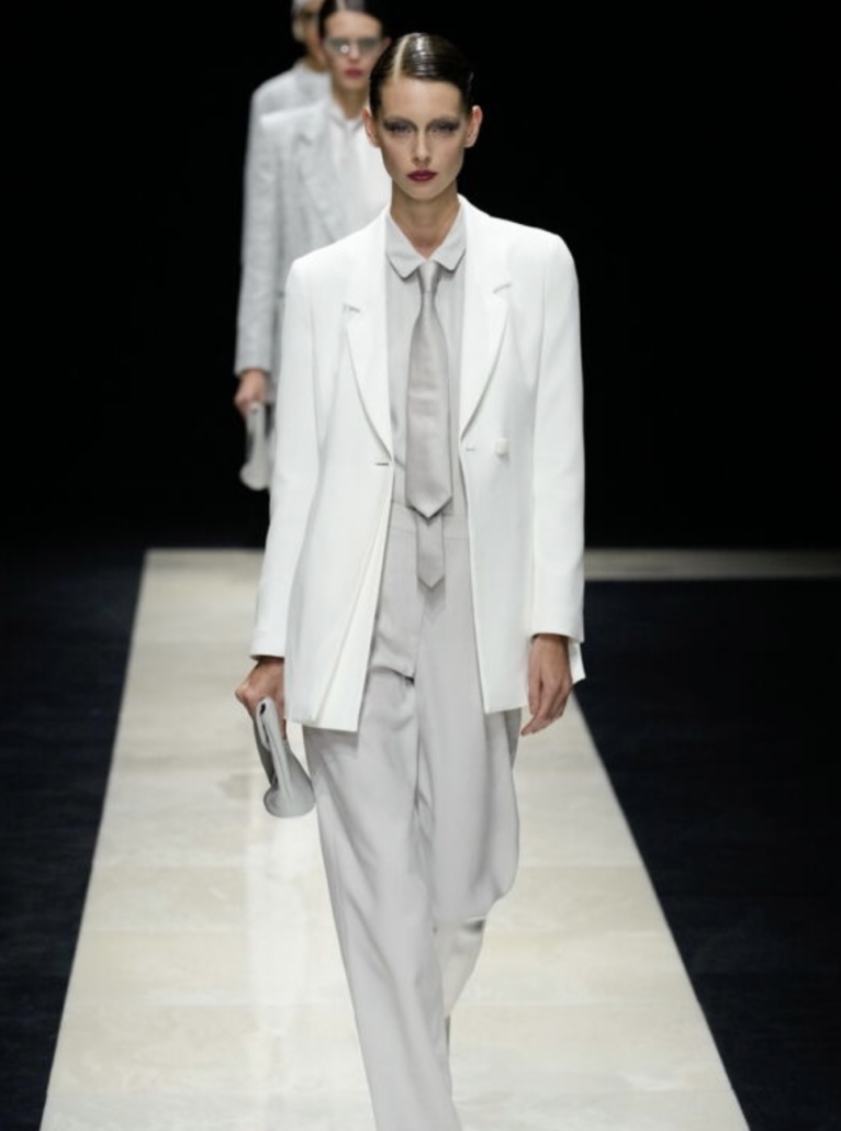 Le style Armani, ce sont des silhouettes au lignes épurées, qui épousent le corps avec naturel, à la fois simples et sophistiquées, dans une palette de couleurs plutôt classique. Un style contemporain mais intemporel, qui convient aussi bien à une journée de travail qu’à un dîner de fête, comme un mix & match entre la milanaise et la parisienne !
