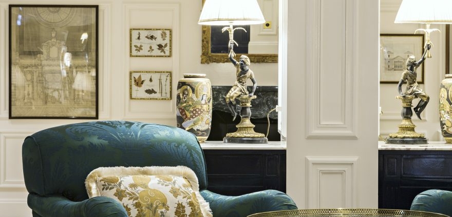 Dans chacune des 48 chambres et suites, toutes uniques, nous plongeons dans un univers chic et intime : antiquités, velours cossus, boiseries chaleureuses et matériaux nobles, toile de Jouy pour certaines, lits à baldaquins pour d’autres, salles de bain en marbre de Carrare …