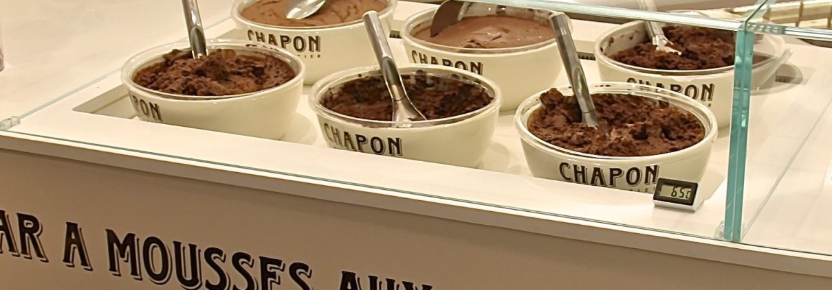 Vous aimez la mousse au chocolat ? Vous serez alors ici aux paradis des gourmands et des gourmets ! Patrice Chapon a ouvert ce premier Bar à mousse au chocolat où l’on peut à la fois en choisir le goût et l’origine, Cuba, Venezuela, Equateur, et le contenant, un cornet de 90 grammes à déguster immédiatement ou des boites au poids à emporter chez soi.