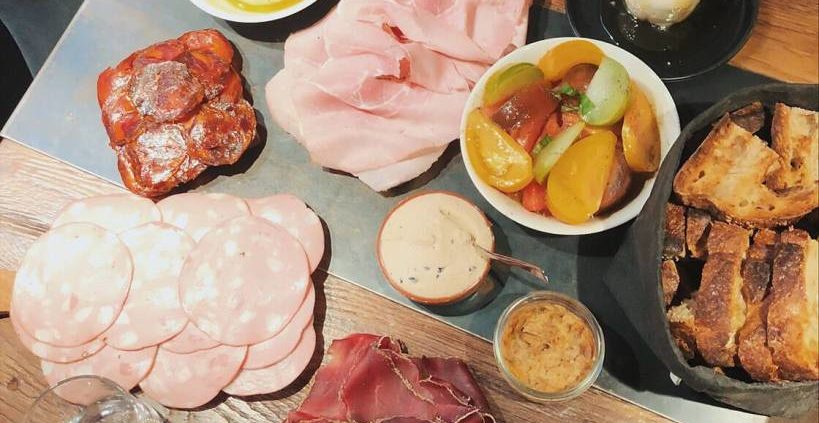 Serge Mathieu et son épouse proposent les produits du terroir dénichés chez les meilleurs producteurs un peu partout en France. Sur les planches, les bonnes huîtres (Utah Beach), les meilleures charcuteries (pata negra, bellota, san daniele, pasterma), les vraies terrines (lapin au calvados, à partager, fromage de tête artisanal, boudin noir aux oignons), le thon fumé de l’île d’Yeu, les sardines de Saint-Gué et les filets de maquereaux au wakamé, les meilleurs fromages (burrata di Corato, camembert, chèvre frais et compotée de poire au safran) et bien-sûr pour accompagner tout ça d’excellents vins naturels.